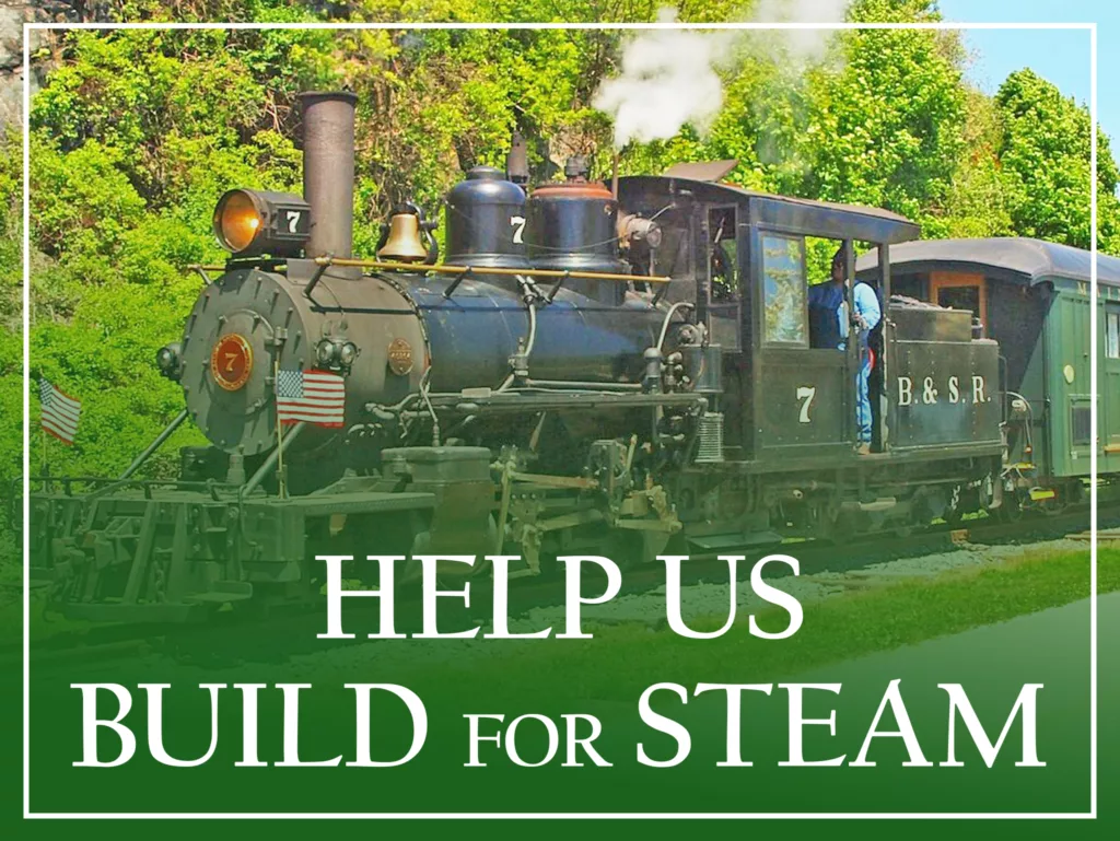 We are asking for your help this spring to construct a new dedicated steam locomotive building for #7. The total project cost is $100,000, and with your support we are ready to move forward once the City of Portland permitting process is complete.